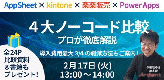 2026年2月17日(火)【無料】プロが教える!AppSheet/kintone/楽楽販売/Power Apps(ノーコードツール)比較・選び方セミナー!