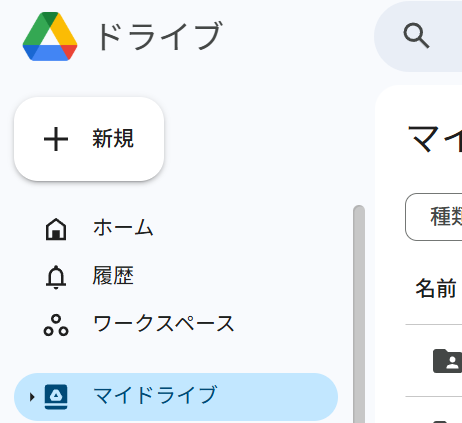 次に移行先のGoogleWorkspaceアカウントで、Googleドライブを開き、左上の新規を押します。